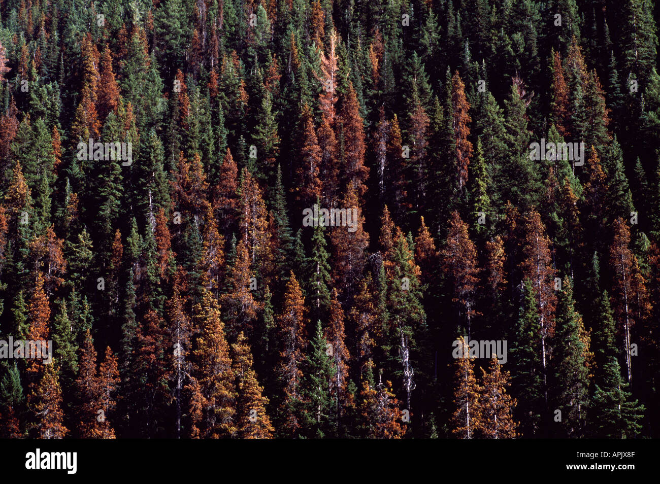 Dying Lodgepole Pine Trees Pinus Contorta In Forest Infested By Mountain Pine Beetle Infestation Bc British Columbia Canada Stock Photo Alamy